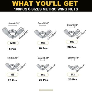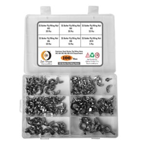 Epi-Torque 100 Pcs Butterfly Wing Nuts Assortment Kit – M3, M4, M5, M6, M8, M10 Stainless Steel Wing Nuts