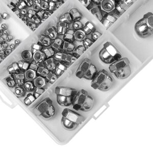 The Epi-Torque Serrated Acorn Cap Nuts Assortment Kit ensures secure fastening and protection for a wide range of projects. Whether you are working on home repairs, automotive fixes, or furniture assembly, these high-quality stainless steel nuts are built to last and provide reliable performance. The included organized storage case makes it easy to keep all sizes neatly separated and readily accessible for your convenience.