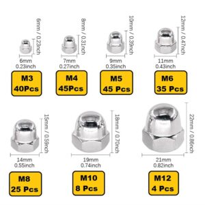Epi-Torque 202 Pcs Stainless Steel Serrated Metric Acorn Cap Nuts Assortment Kit (M3 to M12)