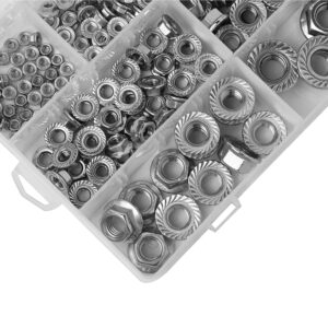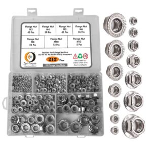 Epi-Torque 212 Pcs Stainless Steel Serrated Hex Flange Nuts Assortment Kit (M3 to M12)