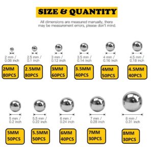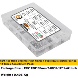 The 550 pieces come in an organized compartmentalized storage box, making it easy to store and access the balls based on size. With its comprehensive quantity and diverse range of sizes, this kit is ideal for both DIY enthusiasts and professional mechanics alike.