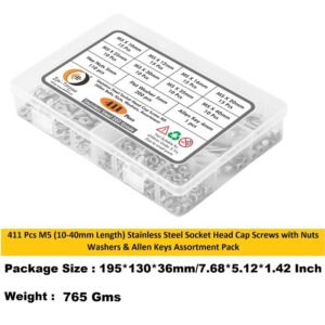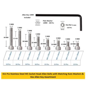 - 411 pieces of M5 stainless steel Allen bolts, nuts, and washers