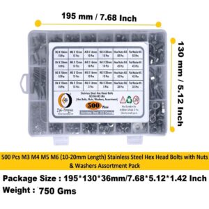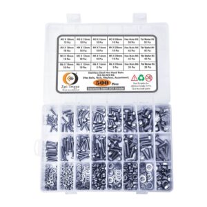 Epi-Torque Metric M3, M4, M5, M6 Stainless Alloy Steel Full Threaded Hex Bolts, Nuts, and Washer Assortment Kit – 500 Pcs