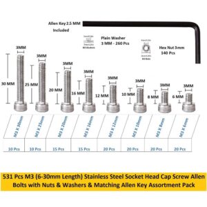 Epi-Torque Stainless Steel Allen Bolt Assortment (531 Pcs, M3)