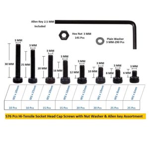 - Hex Nuts (M3): Provides a secure fit with the bolts.