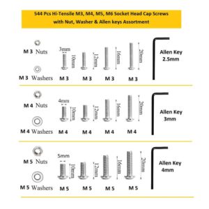 - Complete Assortment: This kit includes M3, M4, and M5 bolts, nuts, washers, and Allen keys, offering versatility and all-in-one convenience for different projects.