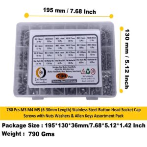 Epi-Torque Stainless Steel Button Head Bolt Assortment (780 Pcs, M3, M4, M5)