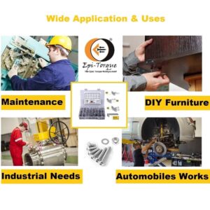 Unlock the power of precision with the Epi-Torque Stainless Steel Button Head Bolt Kit. This extensive 780-piece assortment features a selection of M3, M4, and M5 button head bolts, nuts, washers, and Allen keys—all crafted from durable 202-grade stainless steel. With corrosion resistance and long-lasting strength, these fasteners are ideal for a range of DIY and professional projects. Conveniently organized in a 24-compartment adjustable plastic box, this kit ensures easy access and storage for all your components.
