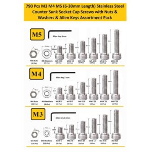 Get organized and ready for any project with this comprehensive assortment of stainless steel bolts, nuts, and washers. Featuring high-quality, corrosion-resistant bolts in M3, M4, and M5 sizes (from 6mm to 30mm), this 793-piece kit includes everything you need for precision fastening. Packaged in a convenient 24-compartment adjustable plastic box, you’ll have easy access to every size—saving you time and money.