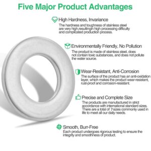 - High-Quality Stainless Steel Alloy: These washers are made from premium stainless steel alloy, offering excellent corrosion resistance and durability. This makes them ideal for use in outdoor environments, such as automotive, marine, and construction applications, where rust and corrosion are common concerns.