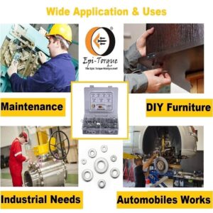 - Versatile Applications: These washers are suitable for a wide range of projects, including automotive maintenance, furniture assembly, plumbing, electrical work, and construction. They work effectively with a variety of materials such as metal, wood, plastic, and more.