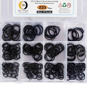Epi-Torque Black Hardened Alloy Steel External Snap Retaining Ring External Circlip Kit – 225 Pcs [12 Sizes, 8mm to 25mm]