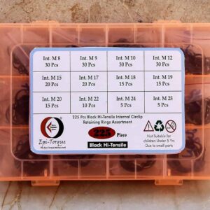 Epi-Torque 225 Pcs Hi Tensile Internal Circlip 12 Sizes 8-25mm Assortment Pack