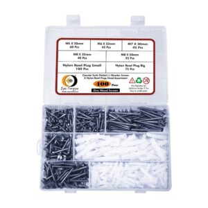 This versatile set covers a wide range of projects, from light DIY tasks to more demanding carpentry jobs. Whether you’re working on furniture assembly, fixing shelves, or securing wood fixtures, this assortment provides the right screw and rawl plug combination for all your needs. The screws feature half-threaded design for better gripping, while the counter-sunk slotted minus head ensures a flush, smooth finish for a professional look.