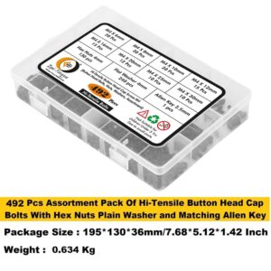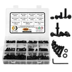 The Epi-Torque High-Tensile Button Head Bolts set offers 492 pieces of top-quality M4 bolts, nuts, washers, and an Allen key, crafted from Hi-Tensile Steel (DIN 7991 10.9). These bolts are perfect for high-strength applications and ensure secure, smooth assembly, whether you’re a professional or DIY enthusiast.