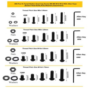 pi-Torque High-Tensile Button Head Bolts Set (M6, M8, M10, M12) – 895 Pcs