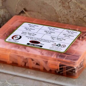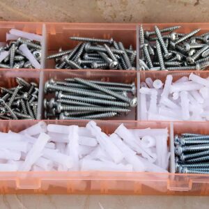 All the screws and rawl plugs are neatly organized in a sturdy, compact storage box. This keeps your kit easy to access and ensures you can quickly locate the right size when you need it.