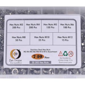 Epi-Torque The Epic Torque #Doityourself Stainless Steel 202 Grade Hexagonal Nuts Assortment Kit (740 Pcs) – M3, M4, M5, M6, M8, M10, M12