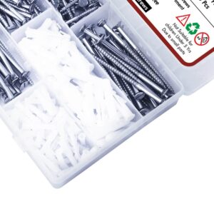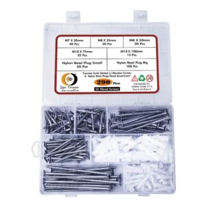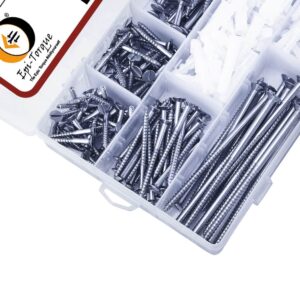 The Epi-Torque Stainless Steel Flat Slotted Head Wooden Screws with Rawl Plugs Assortment Pack is designed for a variety of woodworking and DIY projects. This set includes 290 pieces of flat slotted head screws in different sizes, along with matching rawl plugs to ensure a secure and stable fit.