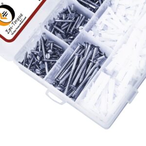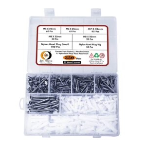 The Epi-Torque Stainless Steel Flat Slotted Head Wooden Screws Assortment Kit is the perfect choice for all your woodworking needs. This comprehensive set includes 350 pieces of high-quality screws and matching rawl plugs in a variety of sizes, designed to provide durable and reliable performance for a wide range of applications.