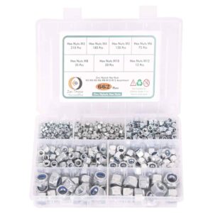 662 Pcs Mild Steel Zinc Plated Metric Nylon Insert Lock Nut Assortment Kit (M3 – M12)